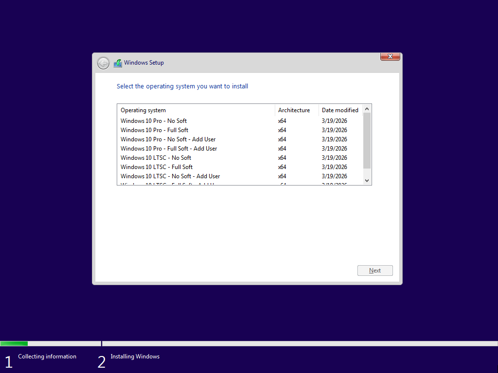 • File iso sẽ có các lựa trọn như ảnh bên trên. TIB chỉ có file bản full soft – không tạo user khi cài đặt.