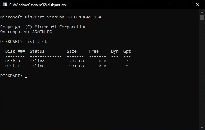 Để kiểm tra ổ cứng đang ở MBR hay GPT, mở Run gõ diskpart và gõ lệnh list disk và nhấn Enter.