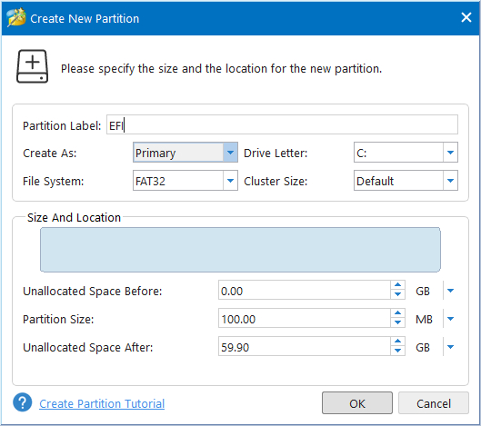 Tạo phân vùng EFI (FAT32)