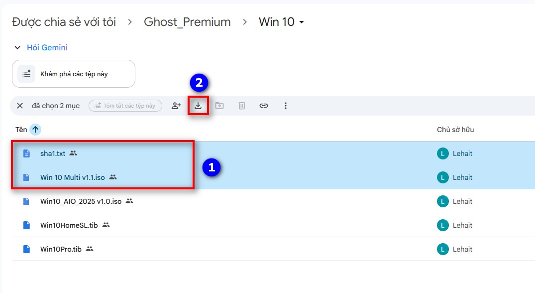 Bước 2: Chọn 2 file trở lên (có thể chọn file ghost và 1 file sha1.txt) và chọn Tải xuống (Download) để nén thành 1 file zip và bạn có thể tải xuống dễ dàng.