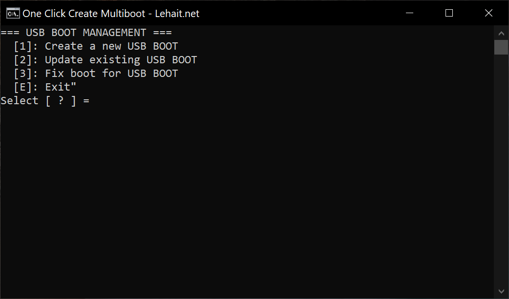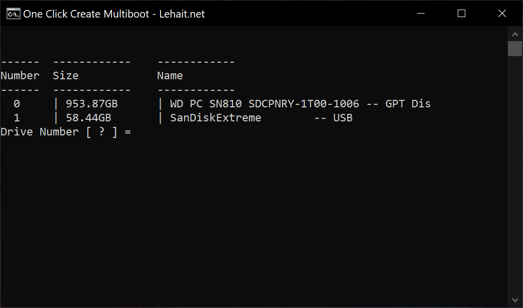 - Chạy file Multiboot.cmd với quyền Administrator sau đó nhập Number của USB/HDD Box tương tự như hình ảnh bên dưới.